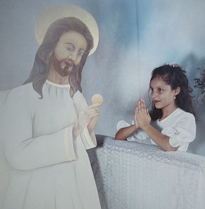 por conta da minha avó paterna, fiz o catecismo e a primeira comunhão. minhas lembranças são: a vontade de chorar e a tentativa de não ir antes de sair de casa, o ioiô da coca-cola que era febre na época e a gente brincava no intervalo, meu crush que chamava Matheus e o meu vestido do dia da primeira comunhão que era 4 dedos acima do joelho, conforme desaconselhado. e como você pode perceber pelo meu tom, eu realmente sinto orgulho disso.