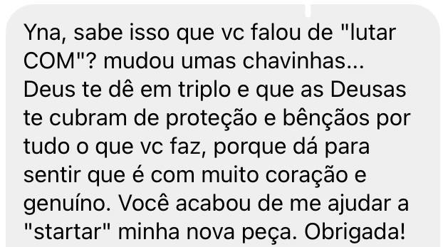 E depois dessas mil voltas testando todas as possibilidades de ser Ynara que eu pude, voltei pra mim. Mas com muito mais segurança e confiança do que antes. Não sem dúvidas e incertezas, porque isso é impossível. Mas muito mais consciente do trajeto? Isso sim.