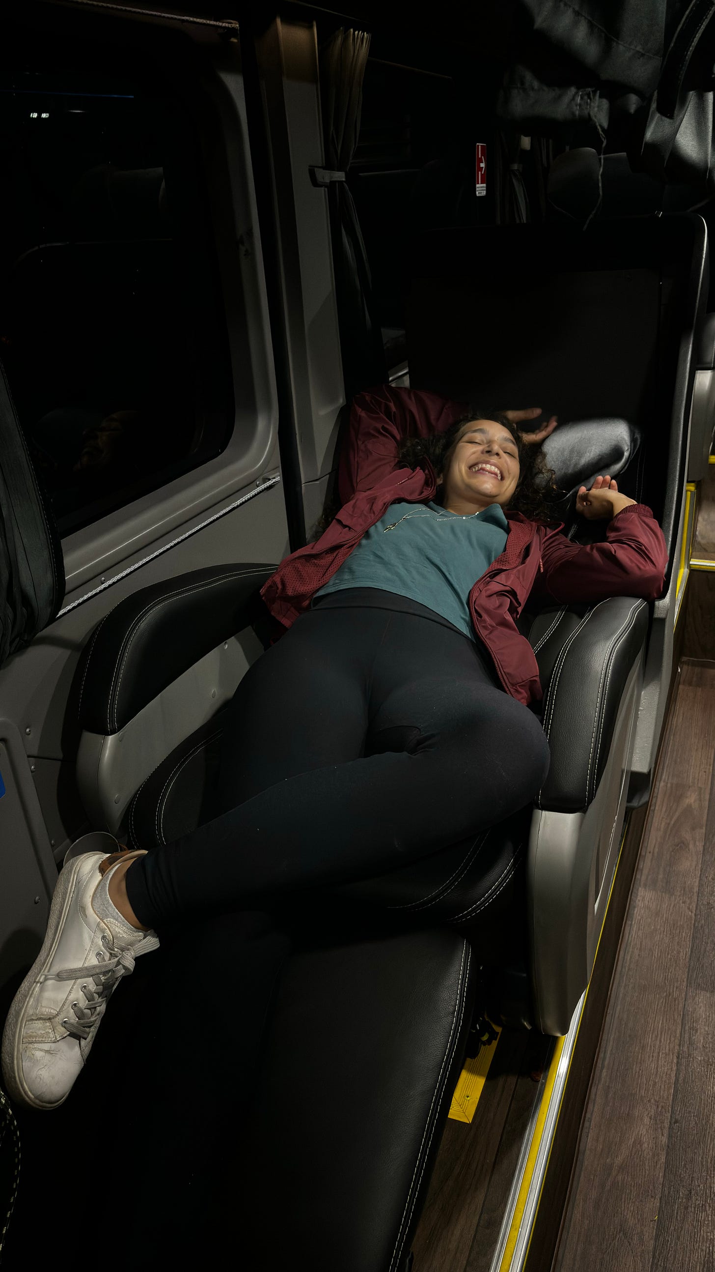 era a segunda vez que eu viajava de leito-cama e estava toda animada e tranquila porque teria uma boa noite de sono. tinha baixado 3 filmes para poder escolher qual assistir no caminho, colocado na bolsa um tupperware com 4 pedaços de torta que havia feito algumas horas antes e algumas daquelas bolachinhas que tem um nome muito fofo: beijinho de freira. também estava com a minha garrafa d’água cheia e com meu fone de ouvido a postos. em resumo: eu estava preparadíssima.