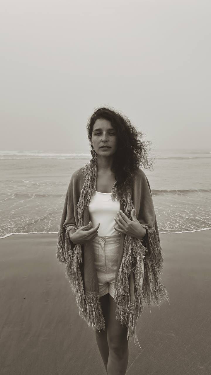 Você na neblina, seus caracóis soltos, a franja da manta, as ondas do mar .. você como uma extensão da paisagem onde está. A foto da mulher no cavalo também me traz essa idéia de extensão, as mãos que com assertividade seguram a crina do cavalo são uma continuação dele e não uma tentativa de controlá-lo.
